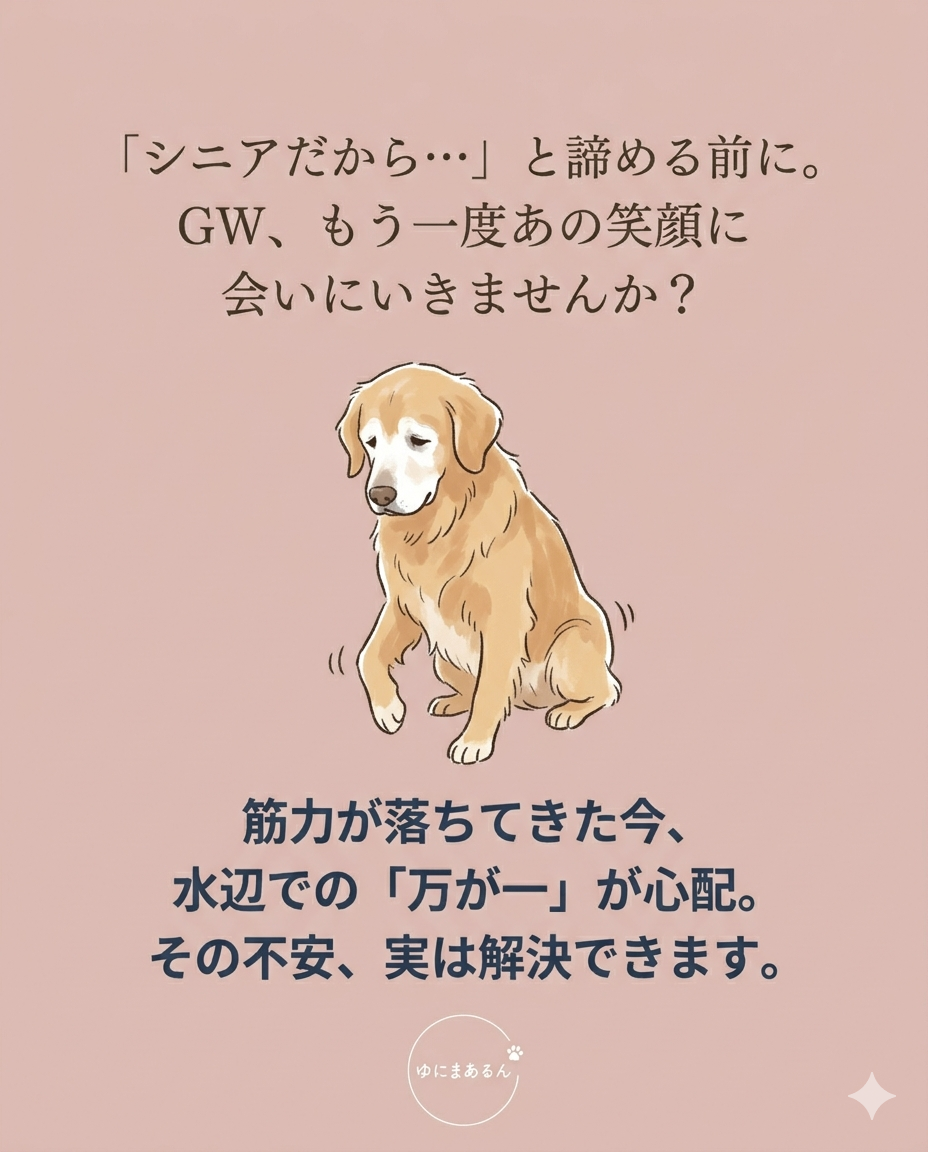「若い頃はあんなに水 GWの計画に。シニアの子も安全に水辺を楽しめるよう、早めの準備で『安心な思い出』作りを。遊びが大好きだったのに…」